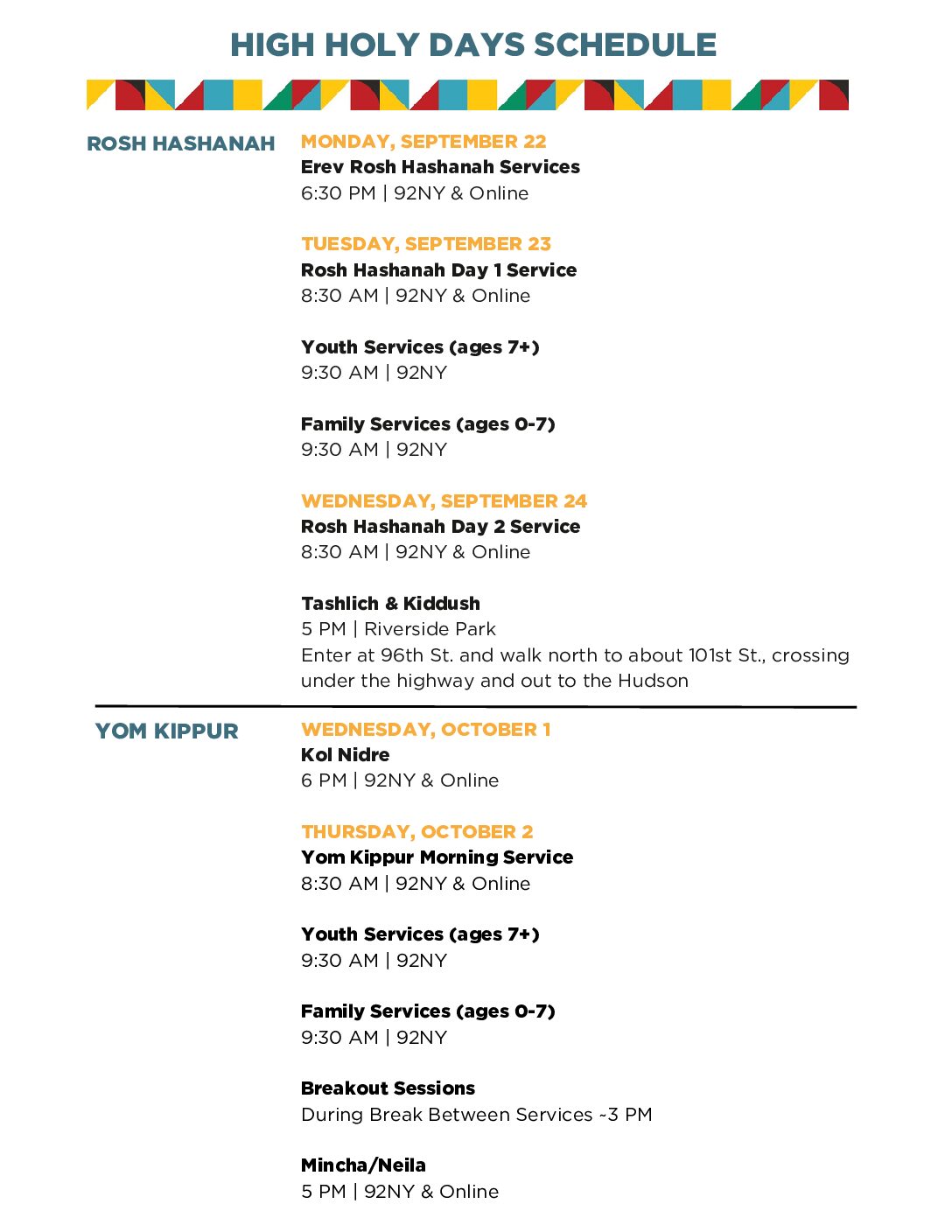 High Holy Day Schedule with Yom Kippur Breakout Sessions